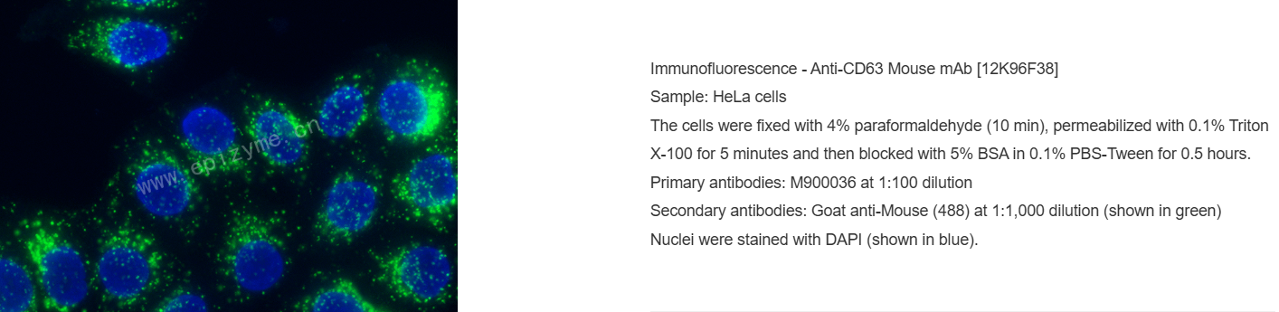 注意事项:Anti-CD63 Mouse mAb [12K96F38]仅用于研究用途,不适用于诊断或治疗程序。